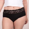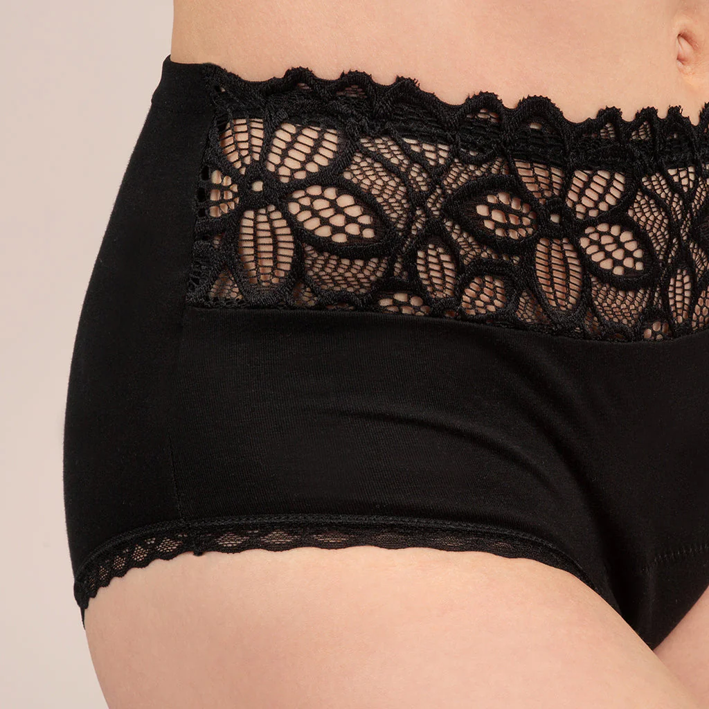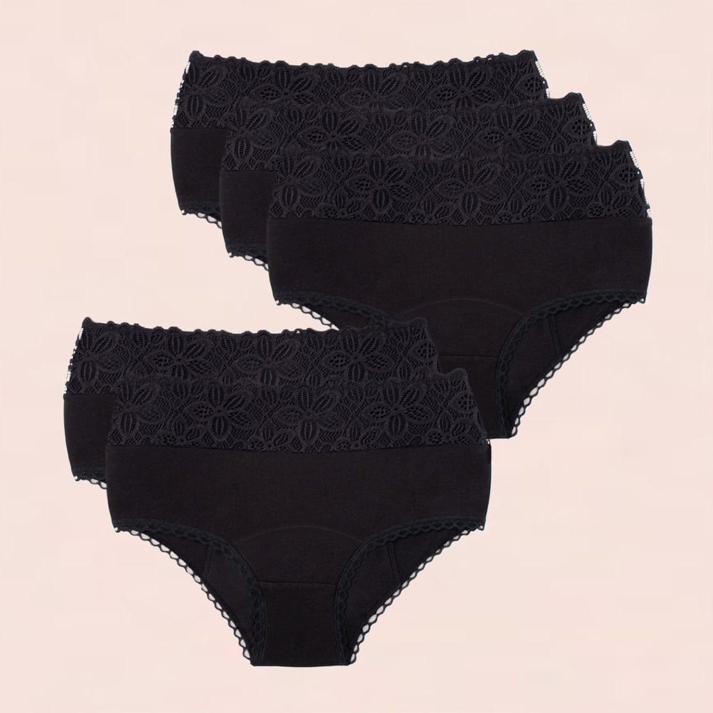 Vásárold meg most a 5 darabos Taynie Deluxe Organic menstruációs alsónemű csomagot. Szeretnél biztonságos és vonzó érzéseket egyszerre átélni anélkül, hogy kompromisszumokat kötnél?. Akkor a népszerű Taynie Deluxe modellünk, gyenge és közepesen erős menstruáció esetén, pont neked ajánlott. A Deluxe magasabb szabású, és a kellemesen puha csipke szegélyének köszönhetően, egy igazi figyelemfelkeltő.