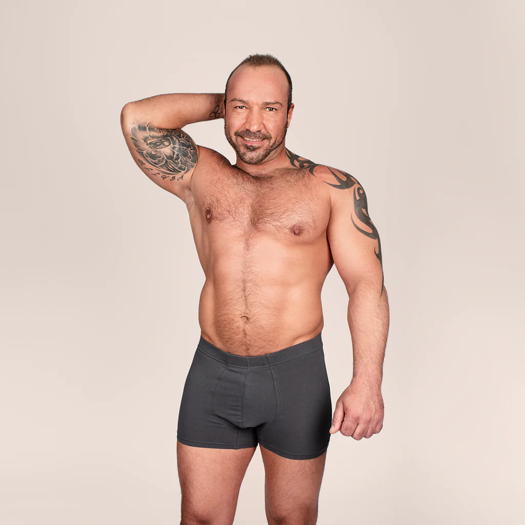 A férfi modelünk biztonságos védelmet nyújt könnyű vizeletinkontinencia esetén. A klasszikus boxer rövidnadrág stílus és a kellemes viseleti komfort alig engedi sejteni, hogy inkontinenciás alsóneműről van szó. A boxer modell akár 80 ml folyadékot is elnyel, és pamutdzsörzéből készül.