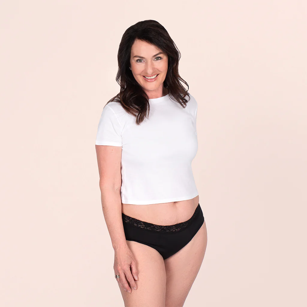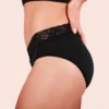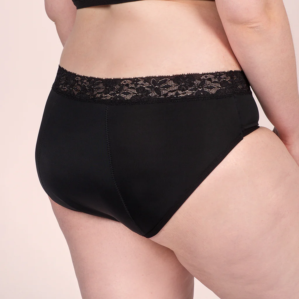 Az Teynie Queen ultra modellünk, kevésbé magas és erős ill. nagyon erős menstruációs időszakban optimális védelmet nyújt számodra. Egy szép virágmintás csipkével láttuk el, amely kicsit keskenyebb, mint a Taynie Deluxe modellünk csipkéje. A védelmi rész egészen az alsó széléig ér, így ideális az éjszakai használatra is.